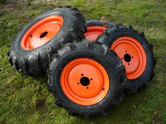 Kit Acker Räder 12" 4 Löcher und 16" - Orangegelb - Kubota : A14, Aste, B1-14, B40, B1200, B1400, B1402, B1550, B1750, B4200, B6000, B6001, B6100, B7000, B7001, B7100, XB1 Zen-Noh : ZB1200, ZB1400, ZB1402, ZB6000, ZB6001, ZB6100, ZB7000, ZB7001, ZB7100